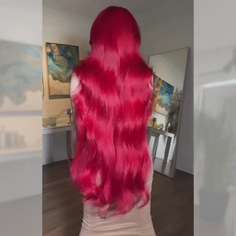 SWAY 30 32 34 36 38 40 42 INCH Long Vibrant Burgundy Red 13x4 Lace Front Human Hair Wigs