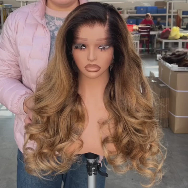 SWAY Ombre Deep Chestnut Brown Honey Copper Caramel Blonde Sun-kissed 13X4 Lace Front Human Hair Wigs 250 300 Density