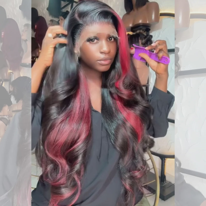 SWAY 30 32 34 36 38 40 inch Red Brown Honey Blonde Highlights 13x4 Lace Front Human Hair Wigs