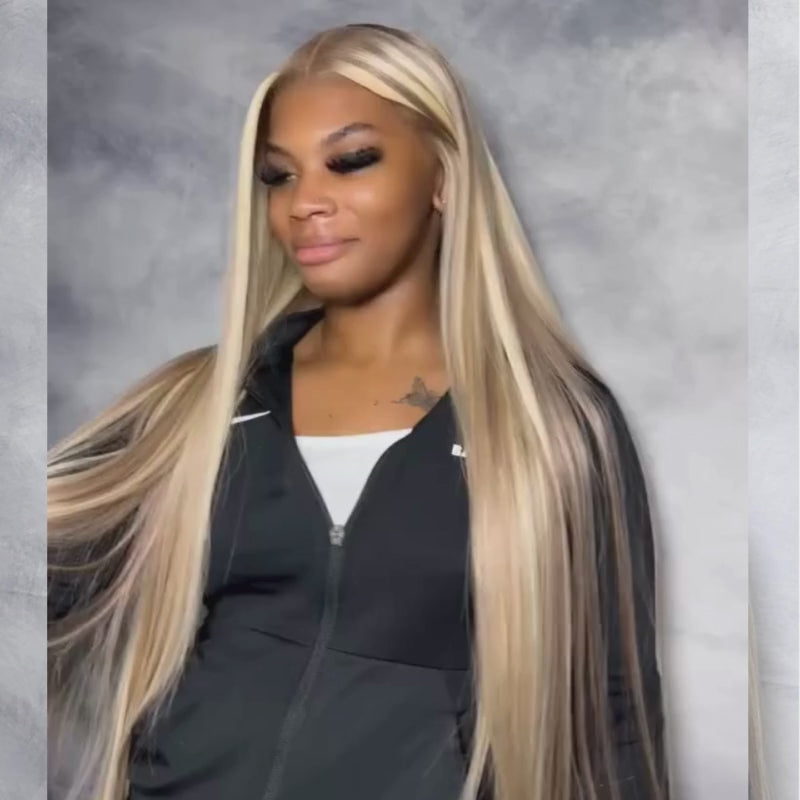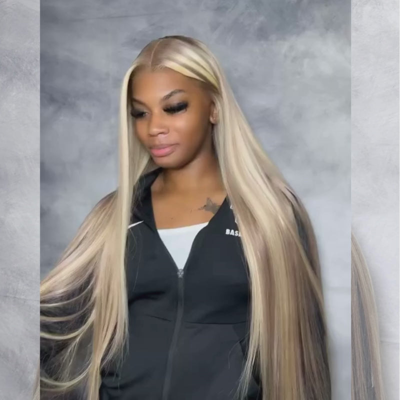 SWAY Blonde Light Brown Highlights Bone Straight Virgin Human Hair Wig
