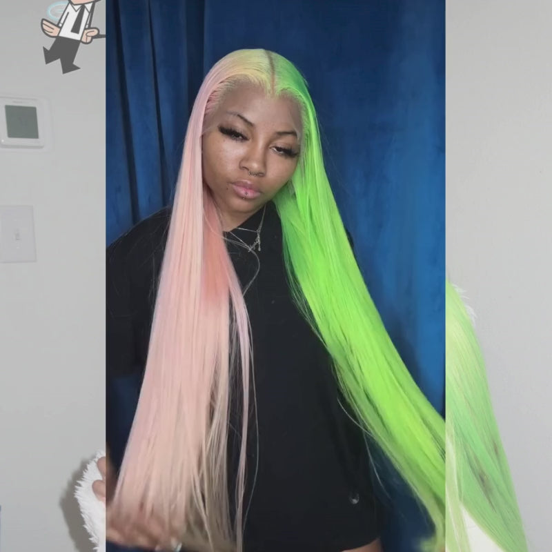 Description | SWAY Half Pink Half Green Split Dye Bone Straight Remy Human Hair Wigs |