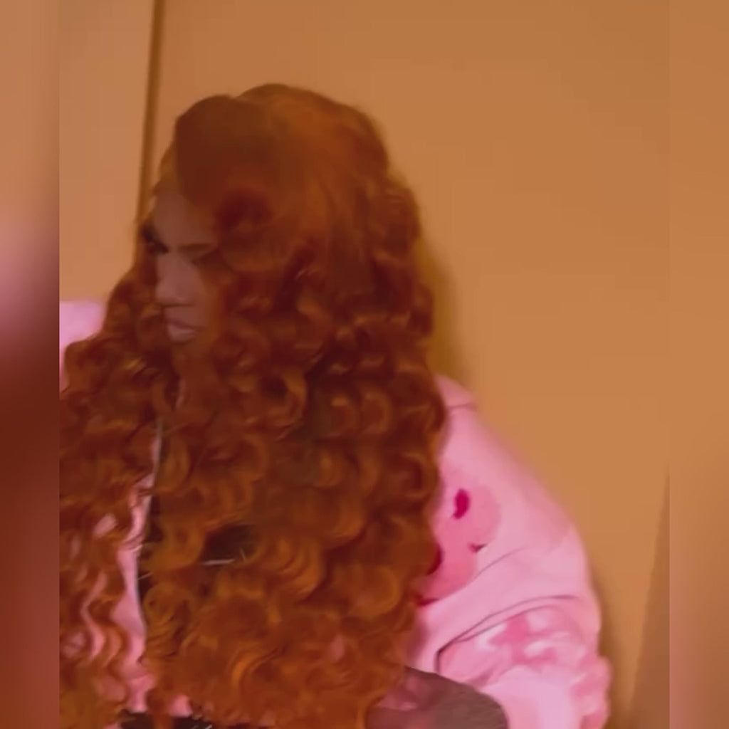 SWAY Ginger Reddish Brown Wand Curls 13x4 HD Lace Front Virgin Human Hair Wigs 200 Density