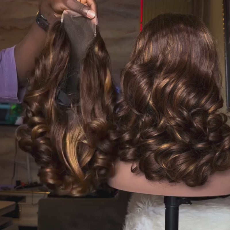 SWAY Honey Blonde Brown Highlights Body Wave 5x6 Glueless Human Hair Wigs