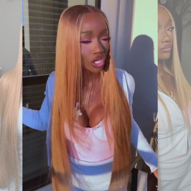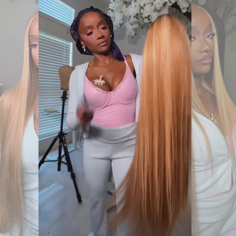 | Description | SWAY Ombre Dark Brown Strawberry Honey Blonde Highlight Bone Straight 13x4 Lace Front Human Hair Wigs |