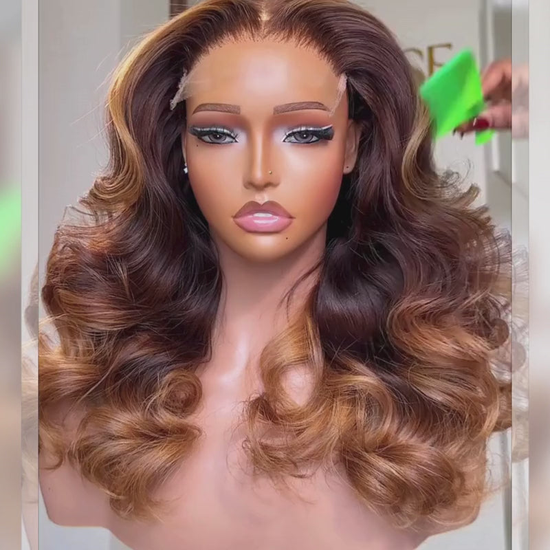 | Description | Ombre Deep Chestnut Brown Honey Copper Caramel Blonde Sun-kissed 13X4 Lace Front Human Hair Wigs 250 300 Density |