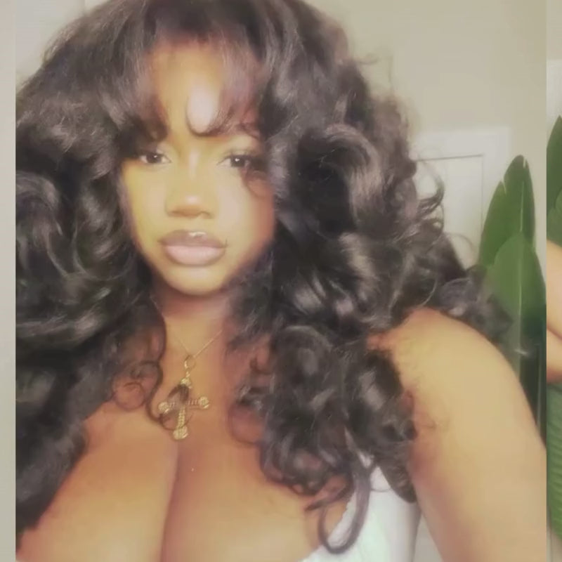 | Description | SWAY Voluminous Bouncy Loose Wave With Bangs 13x4 Lace Front Human Hair Wig 300 Density |